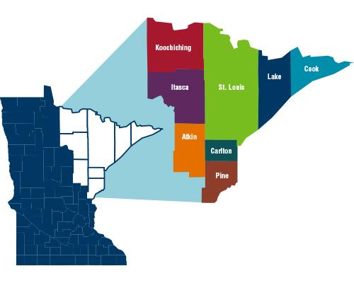 The Arrowhead RTCC includes the counties of Aitkin, Carlton, Cook, Itasca, Koochiching, Lake, Pine, and St. Louis.