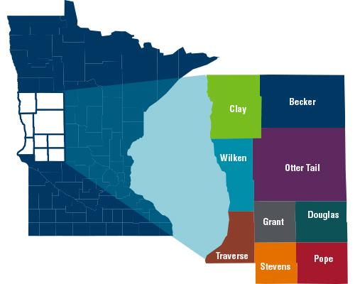 The Region 4 RTCC serves the counties of Becker, Clay, Douglas, Grant, Otter Tail, Pope, Stevens, Traverse, and Wilken.